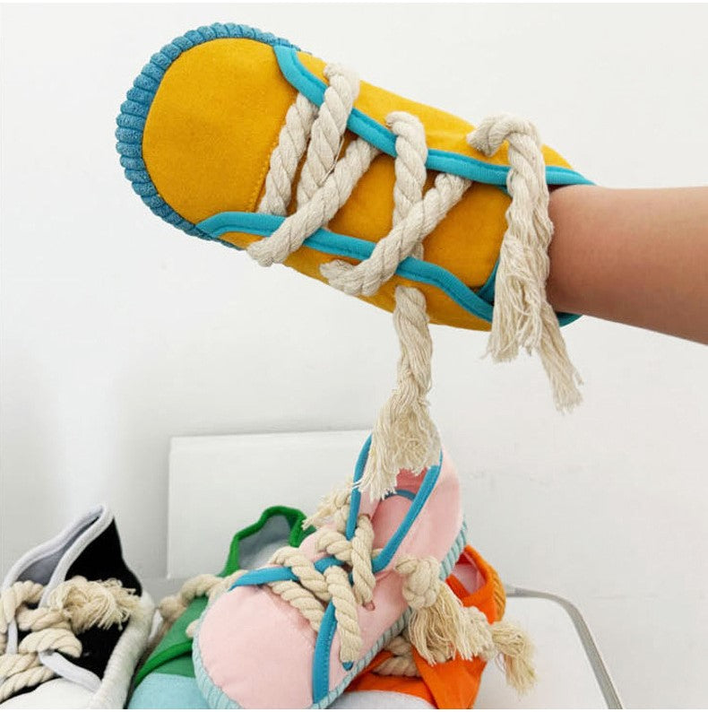 Tired of boring pet toys? Say hello to the Canvas Sneaker Toy – a playful, colorful twist on the classic chew toy that blends fashion-forward design with pet-friendly fun. Perfect for pups who love to chew, tug, and fetch!
